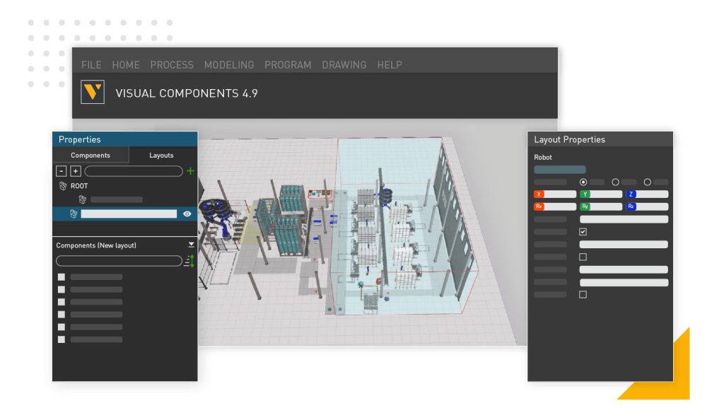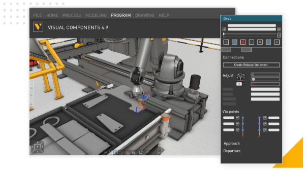 Visual Components 4.9 包含用于川崎和安川機器人的新連接插件,加快了機器人程序的測試和驗證。這種集成簡化了從模擬到實際應用的過渡,確保您的安川和川崎機器人系統(tǒng)能夠快速、正確地啟動和運行。