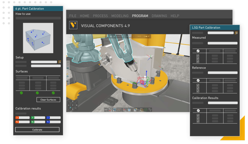 Visual Components 4.9 還帶來了全新設計的離線機器人編程 (OLP) 校準工具。這些新工具更加直觀,為機器人校準提供了帶有詳細報告的指導說明,使虛擬世界和物理世界能夠準確匹配。