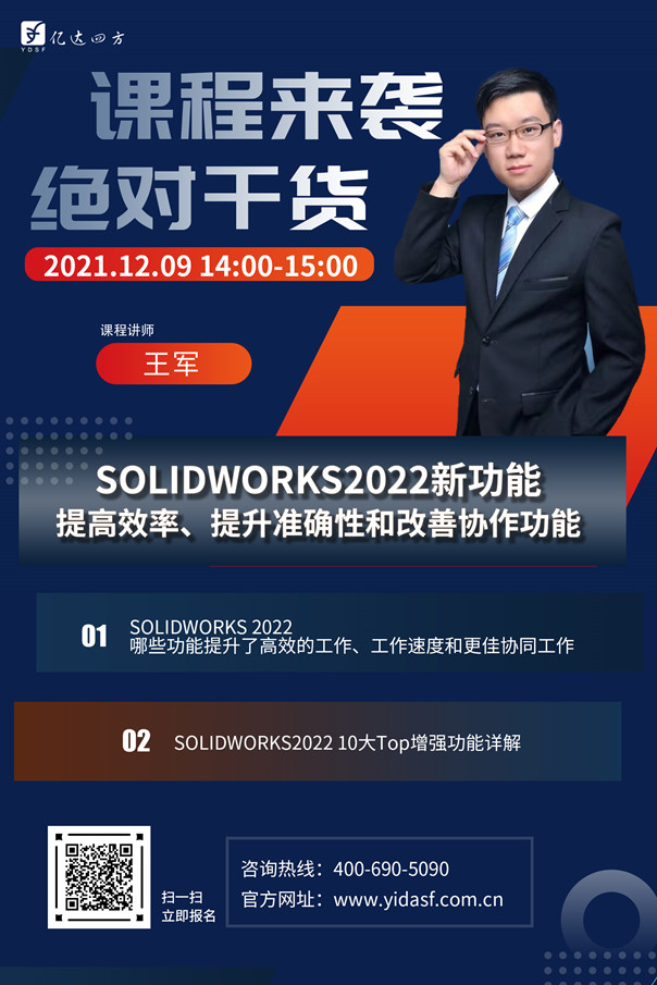 SOLIDWORKS 2022新產(chǎn)品發(fā)布會在全國各大城市如火如荼的開展,還是有很多用戶由于地理位置和時間問題無法親臨活動現(xiàn)動現(xiàn)場,為此億達四方專門舉辦線上的SOLIDOWRKS 2022新產(chǎn)品發(fā)布會,特邀請了資深的技術(shù)顧問分別對廣受用戶關(guān)注的四大產(chǎn)品進行功能解析: