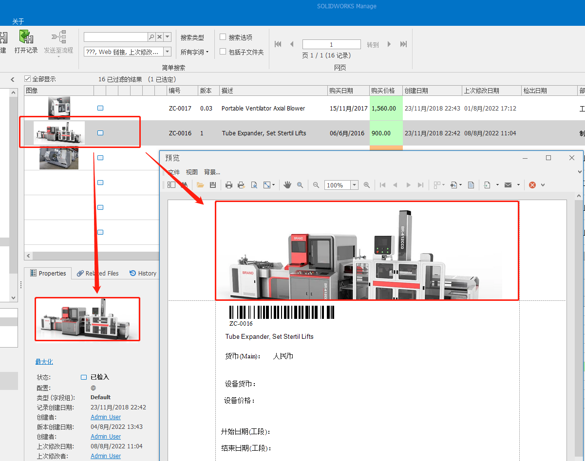 五、 完成設置后,點擊報告設計器界面頂層命令“保存于SOLIDWORKS Manage”按鈕,關閉報告設計器界面。回到對象管理器界面,點擊“保存”后完成在報告中顯示產(chǎn)品圖像的設置。實際使用效果如下圖所示: